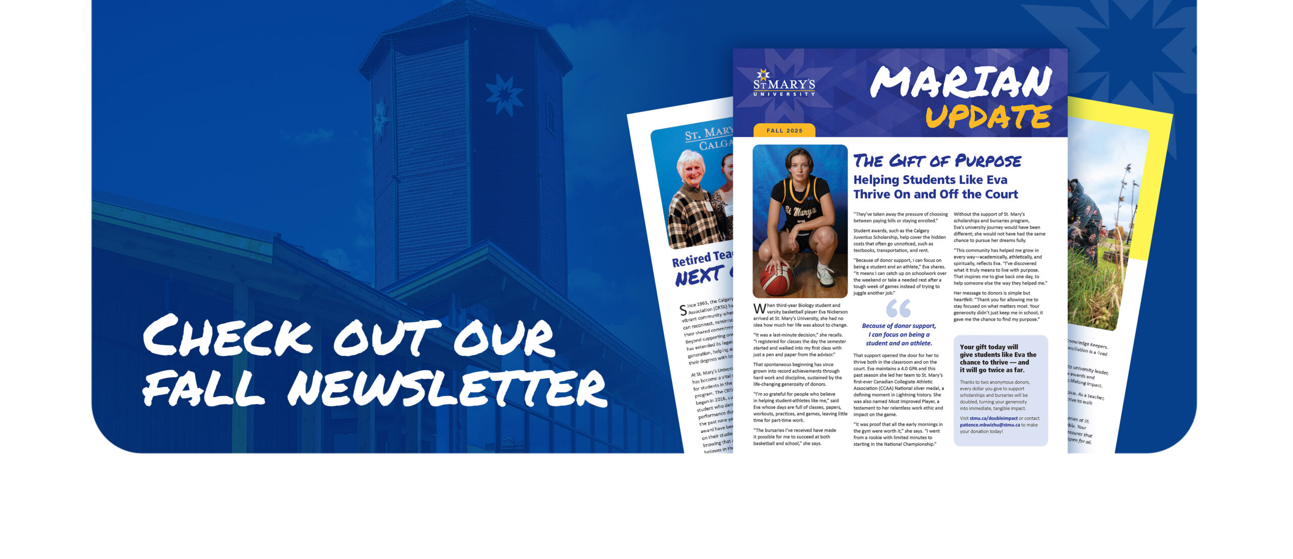 With our strong emphasis on liberal arts and sciences, we provide a well-rounded education that nurtures intellectual growth. But we don’t stop there. At StMU, we believe in fostering holistic development. Engage in our athletic programs, clubs and community service initiatives to strengthen your body and build lifelong connections. Embrace our Catholic Intellectual Tradition, which instills values of compassion, ethics and social responsibility to nurture your spirit. Join our welcoming community and embark on a journey of personal and academic growth. At St. Mary’s University, we are committed to developing your whole self. In fact — 50% of our students are active volunteers on campus and in their community.