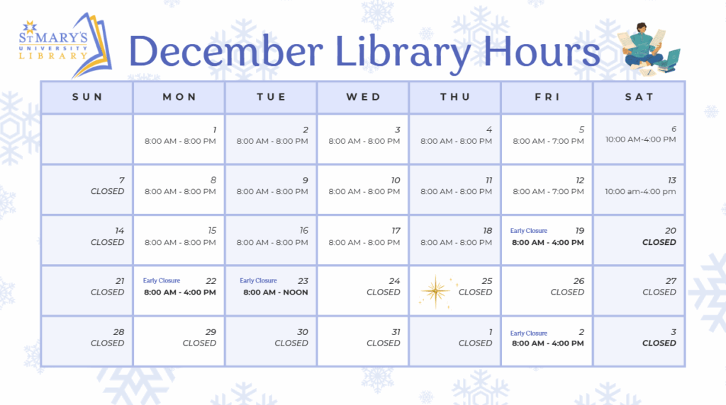 The StMU Library’s regular hours resume January 5, 2026: